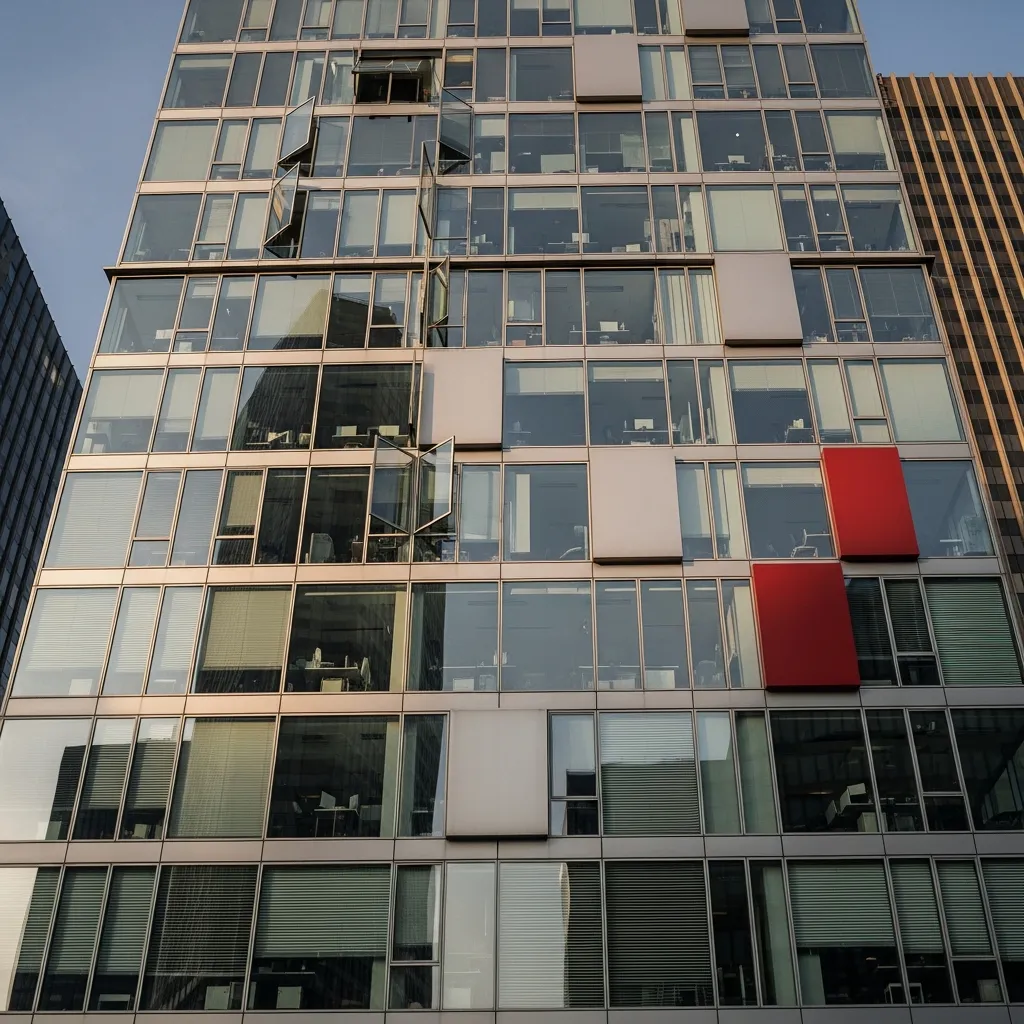 42-story commercial office building with 2,800 motorized roller shades. Integrated building management system with automated scheduling based on solar positioning. Blackout and light-filtering fabrics coordinated across 850,000 square feet of glazing.