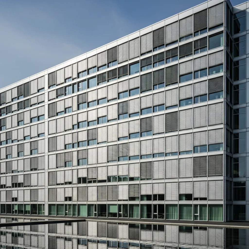 Corporate towers, professional buildings, and coworking spaces throughout major metropolitan areas. Motorized systems with building automation integration, energy-efficient fabrics, and coordinated aesthetics across multiple floors and zones.
